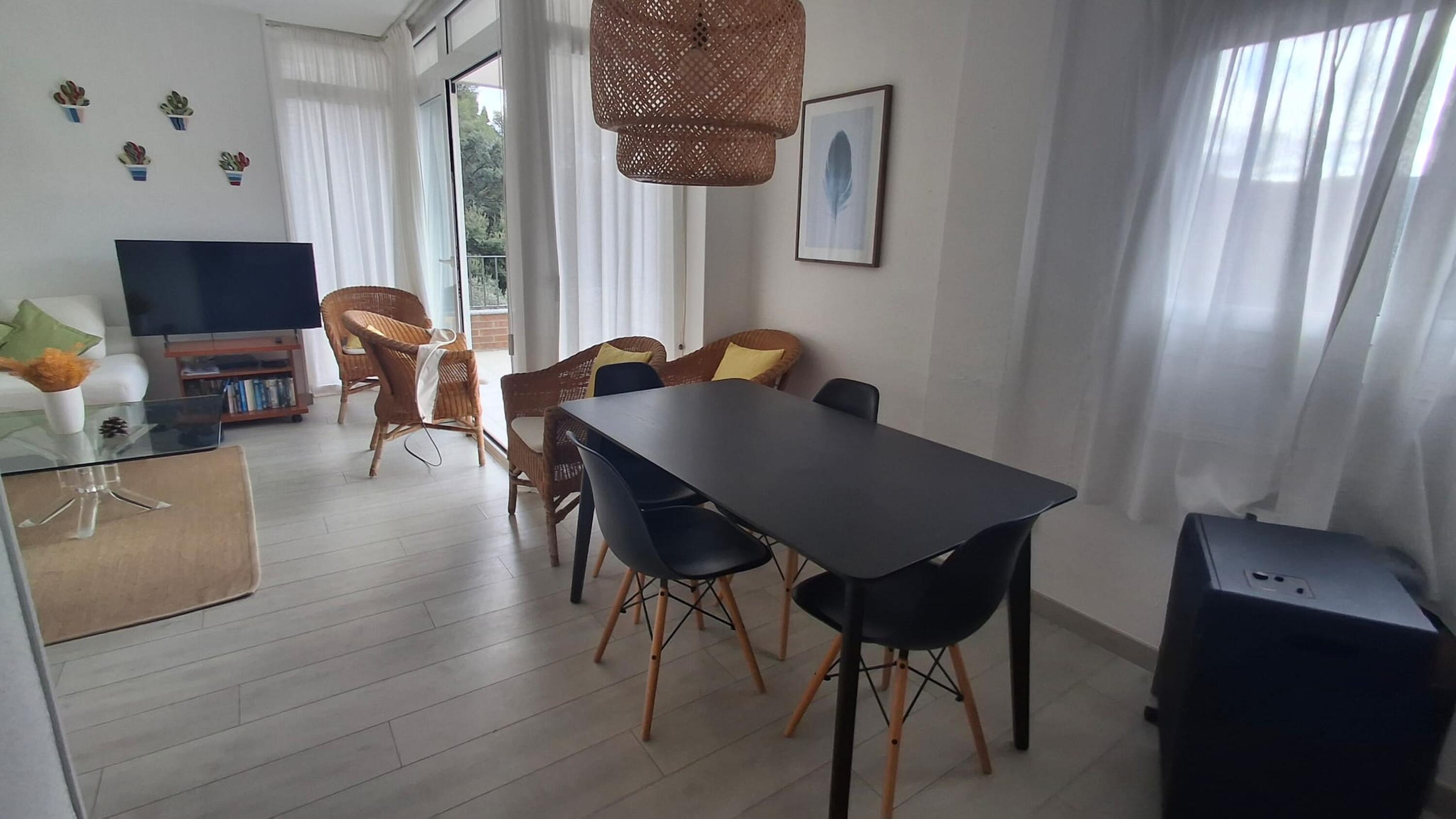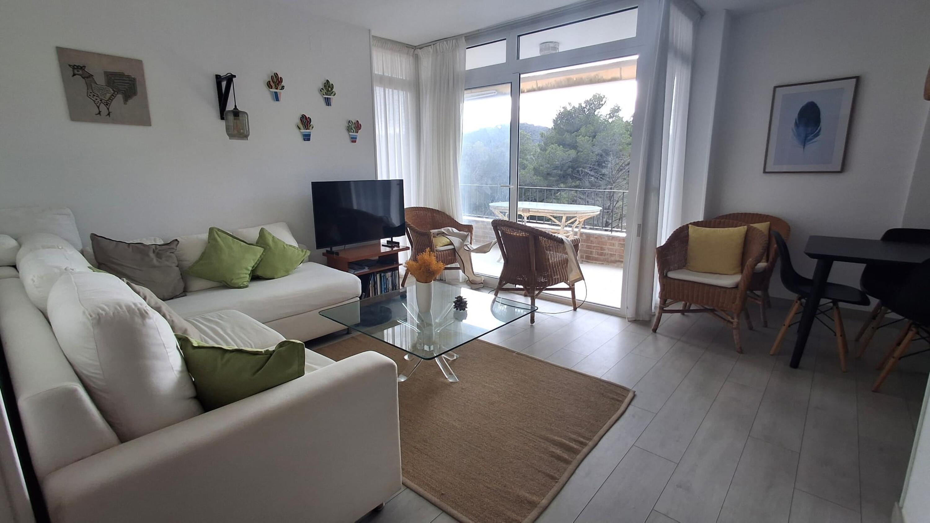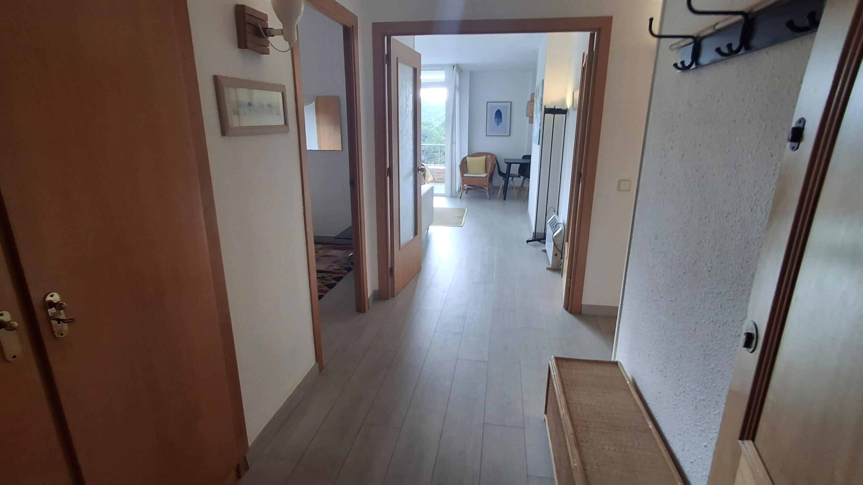 L'apartament consta de dos dormitoris amb llit de matrimoni, bany amb dutxa, cuina completament equipada, rentador amb rentadora i menjador sala d'estar amb televisió i sortida a una àmplia i assolellada terrassa amb vista a la muntanya.