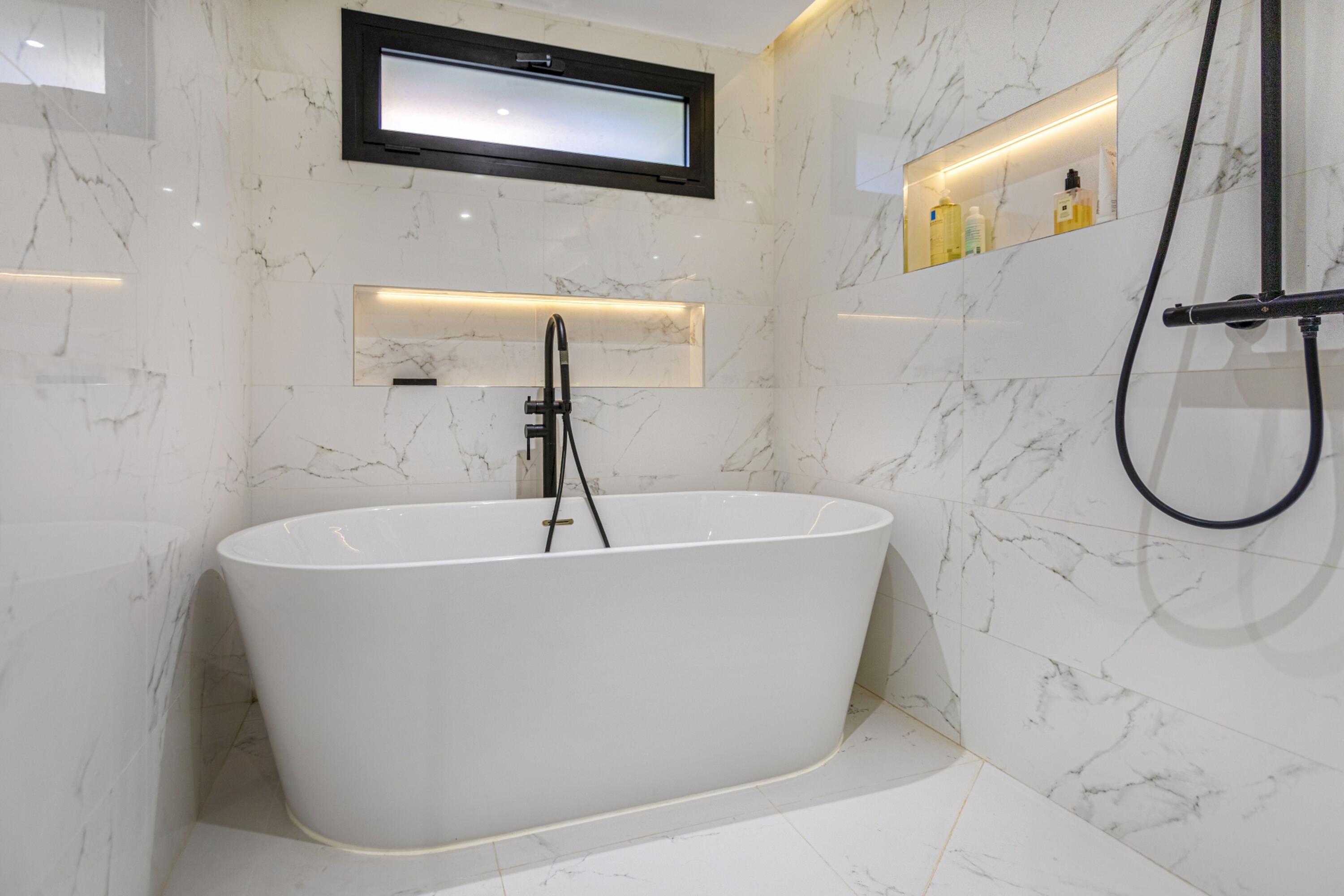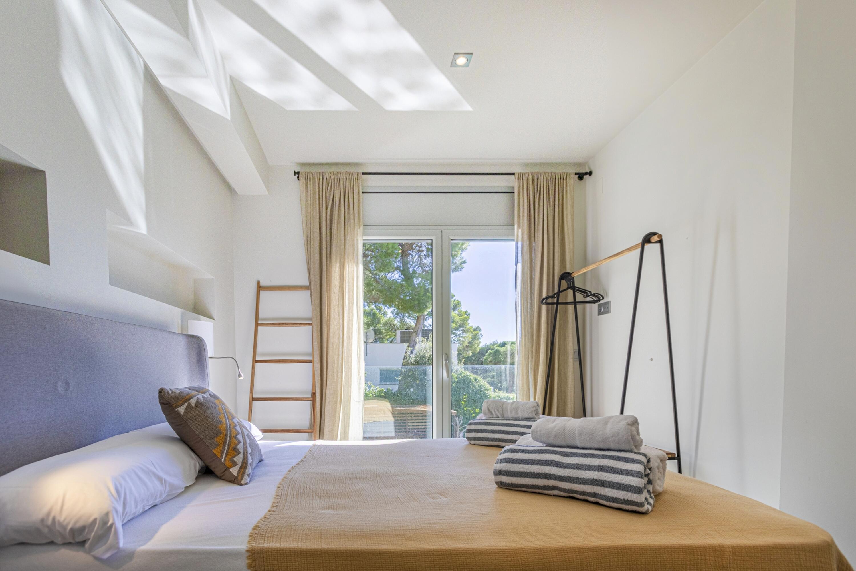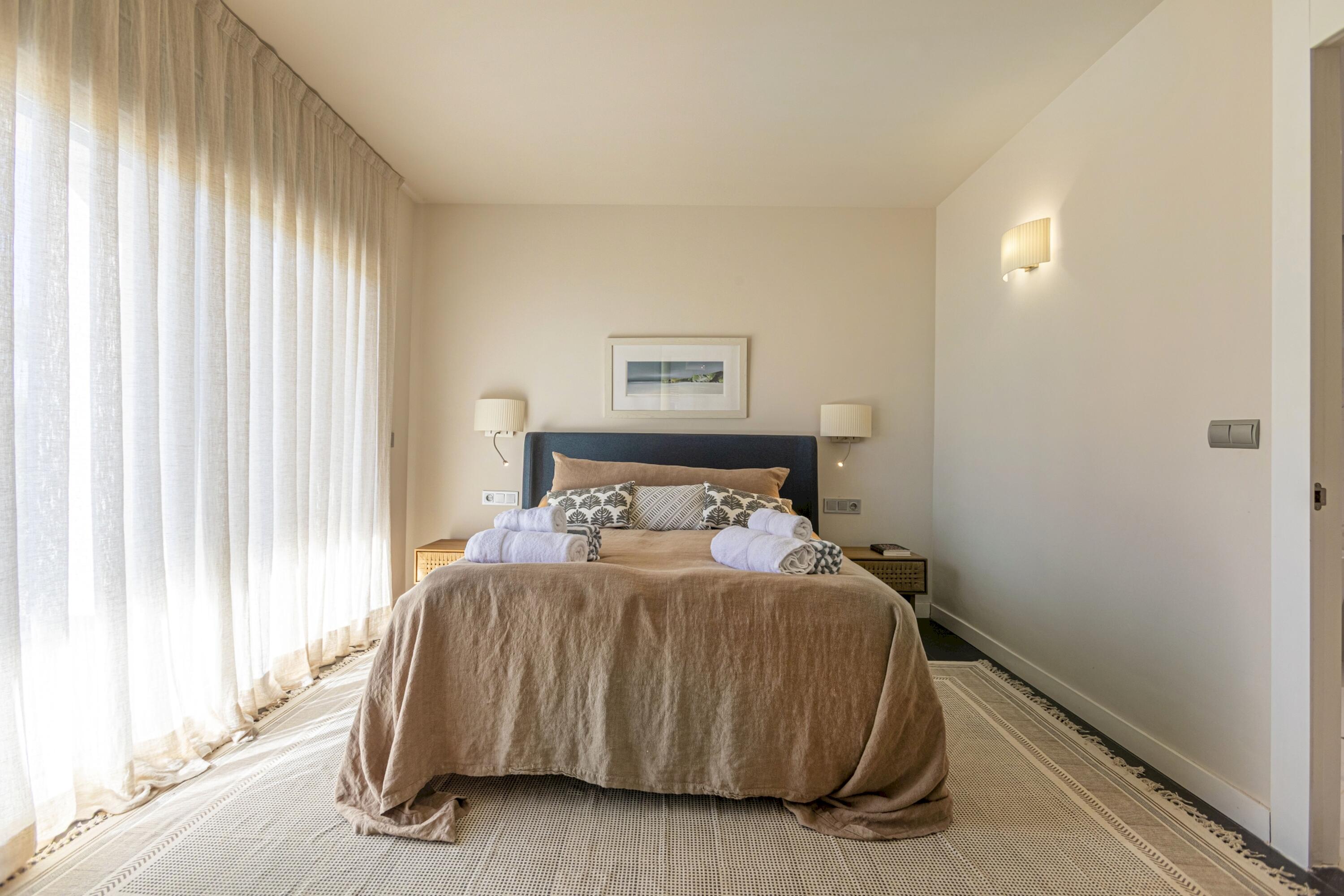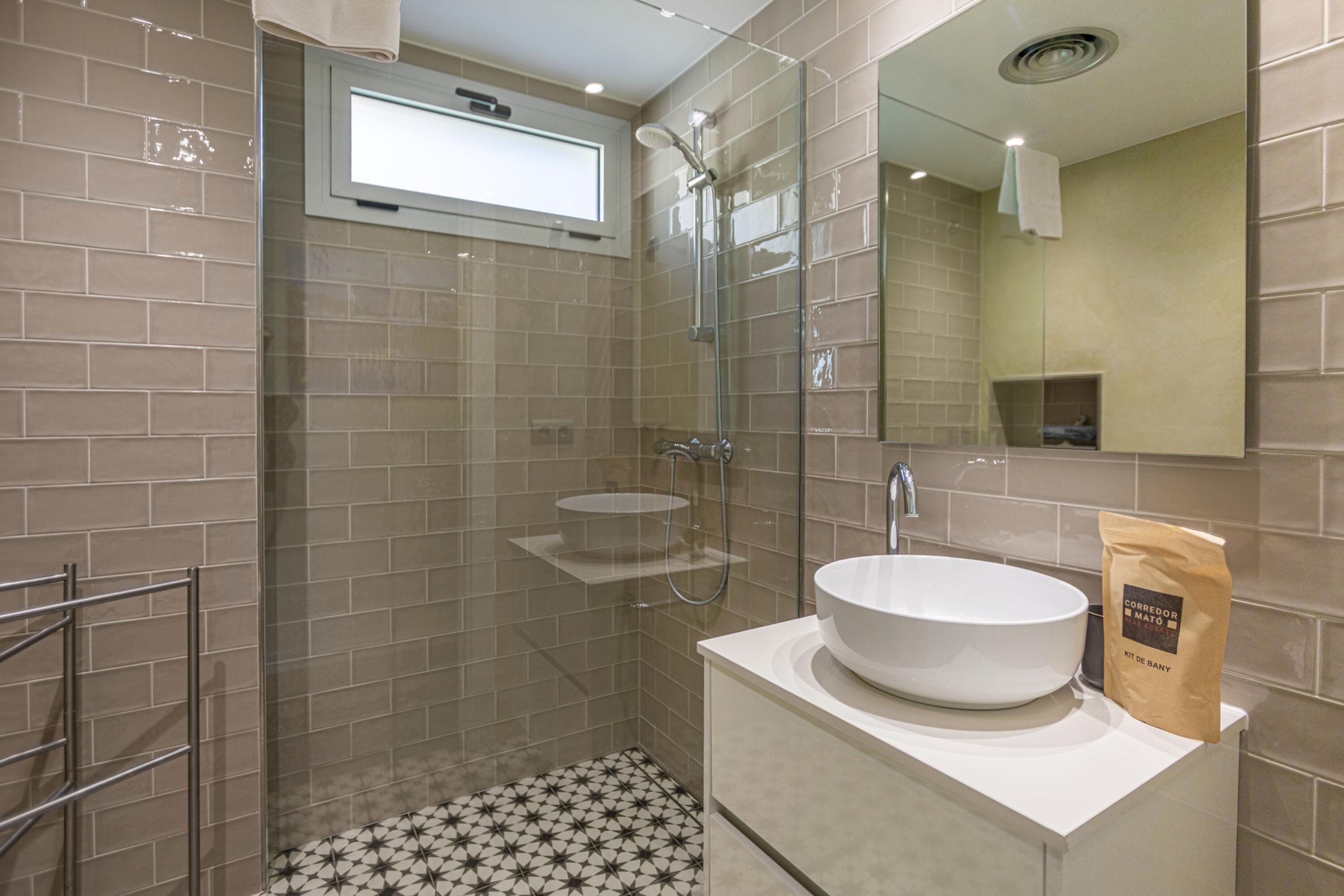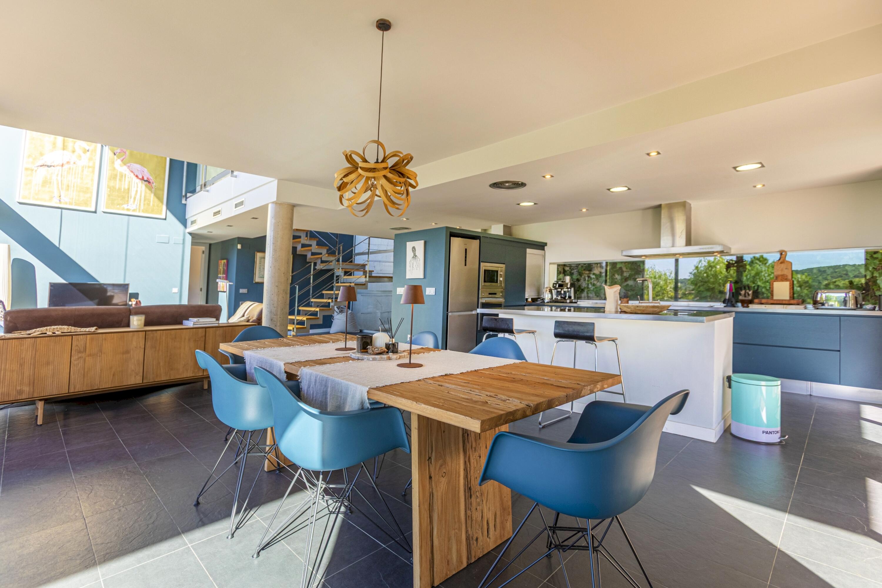 A la planta baixa es troba una gran sala d'estar, lluminosa i decorada amb molt d´estil. Aquí mateix hi ha un lavabo de cortesia i espai de menjador adjacent a la cuina oberta i moderna i totalment equipada amb illa central i aigua potable gràcies al sistema d´osmosi. Des de totes aquestes zones es pot accedir a la piscina d´aigua salada i al jardí, així com des del dormitori principal que disposa de la seva pròpia terrassa, perfecta per prendre el sol després d'un bon bany, sopar a la fresca amb els amics i la família, o simplement gaudir de les vistes de l'olivera mil·lenària i la plantació mediterrània i els turons més enllà, amb una copa de cava fresc. El dormitori principal té un vestidor independent i un impressionant bany amb efecte de marbre blanc, dutxa amb efecte de pluja, banyera i accessoris moderns de luxe.