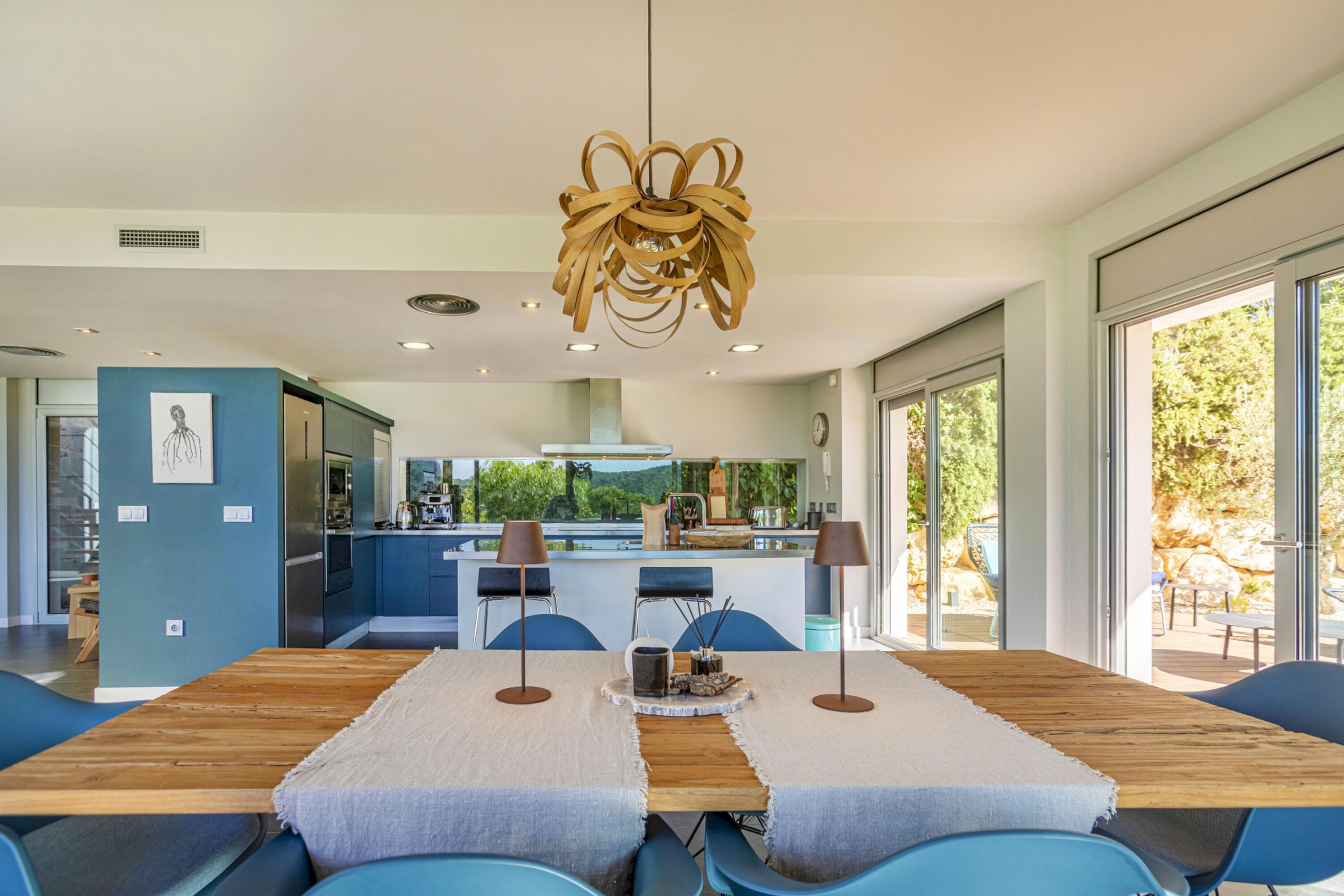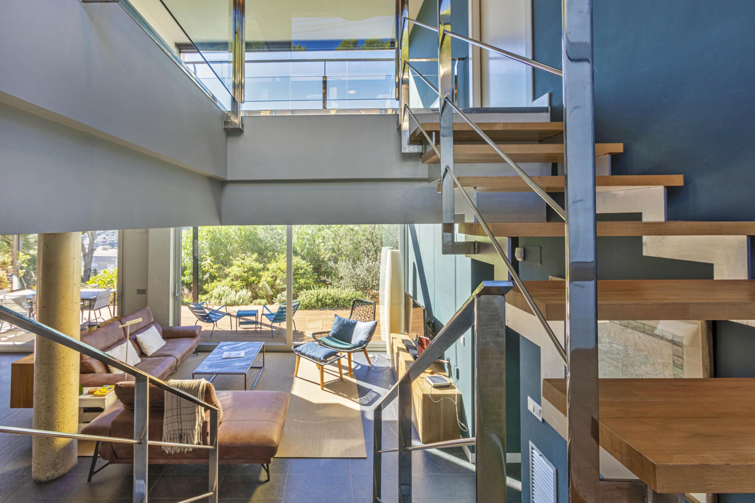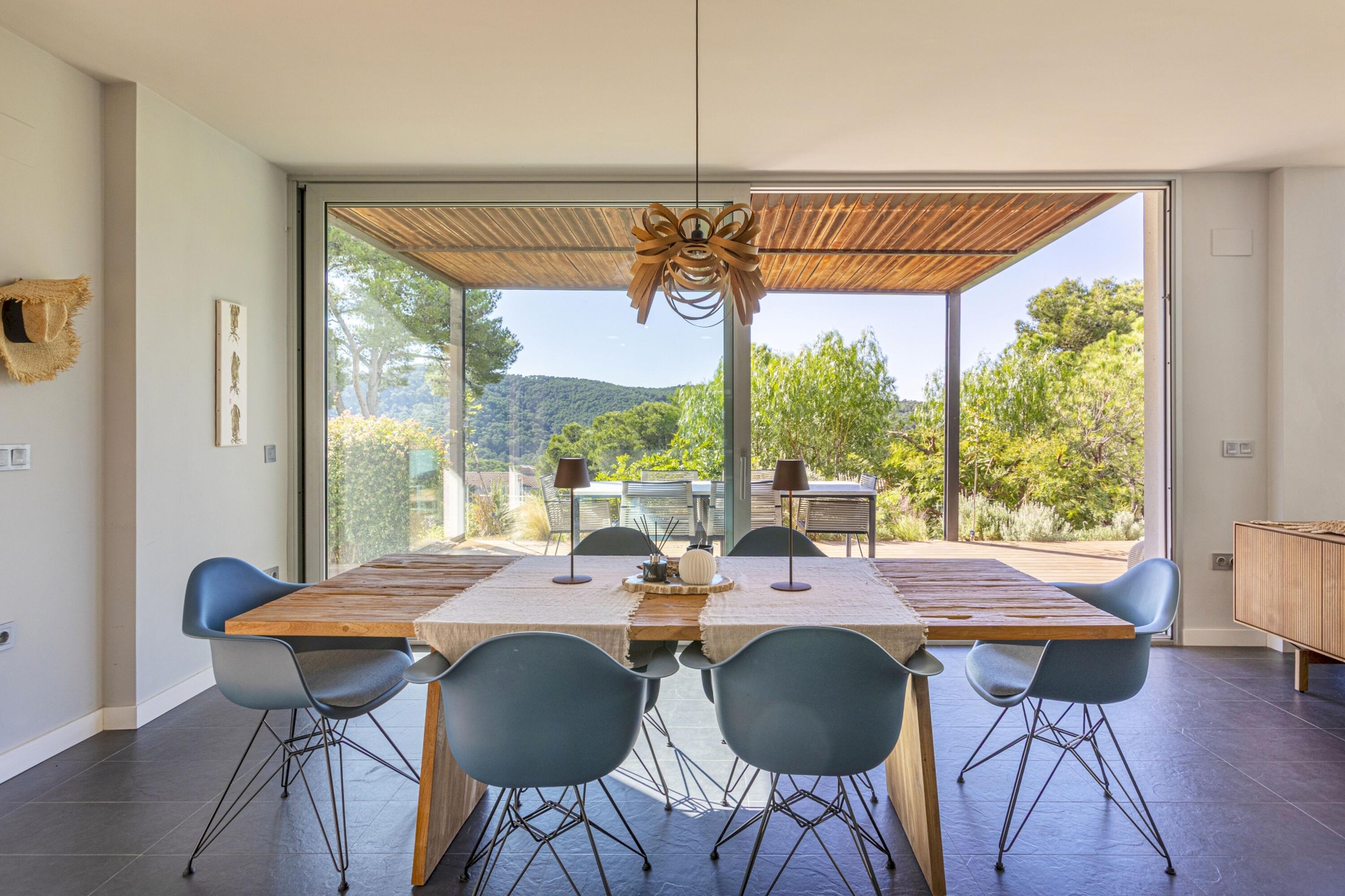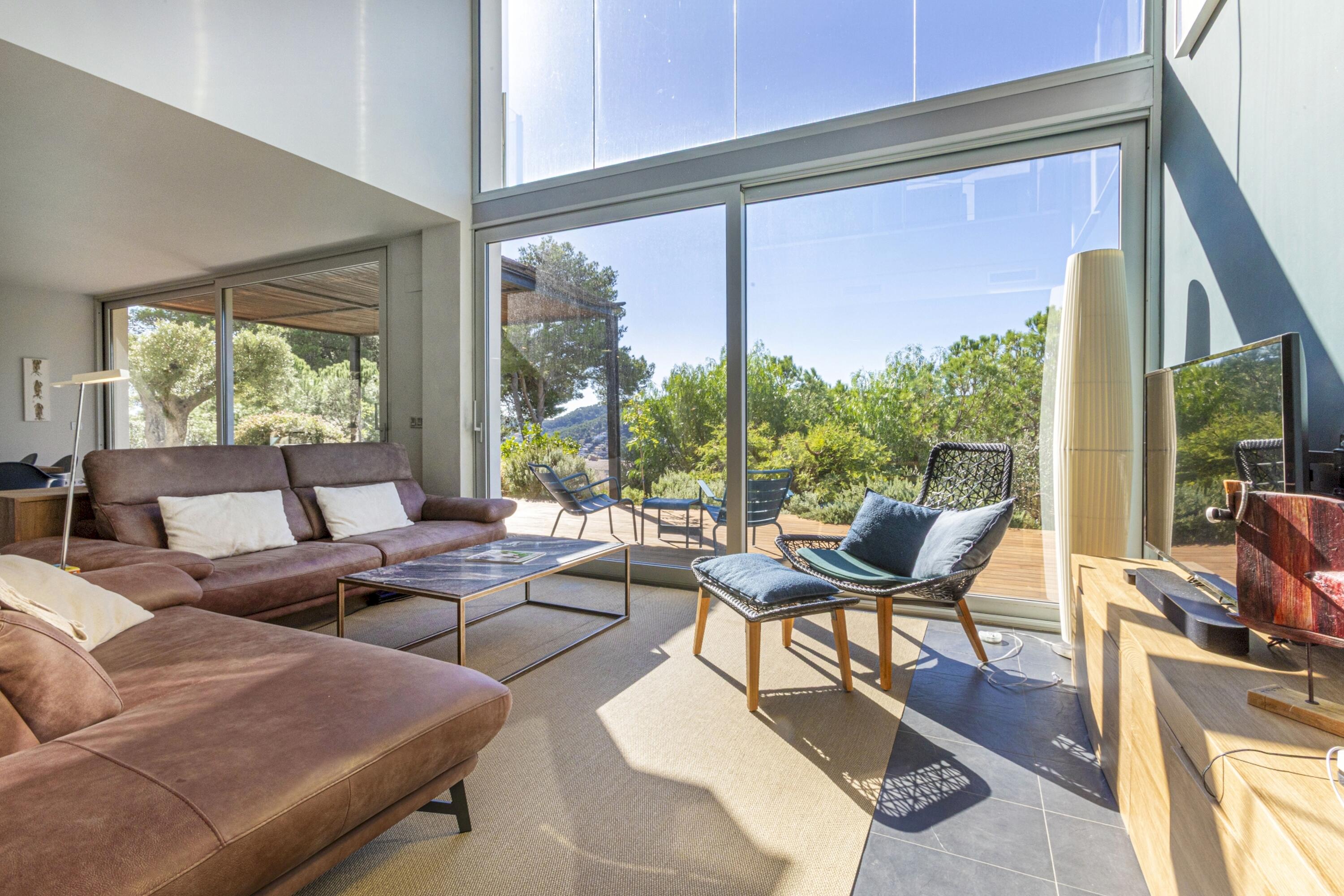 Aquí s'afegeix el seu disseny contemporani i els seus acabats d'alta qualitat, a més d'un fàcil accés a les zones exteriors, per a una estada totalment relaxant i una veritable vida interior/exterior en aquesta bonica part de la Costa Brava. La propietat gaudeix de sol durant tot el dia i l'àmplia terrassa envolta 2 costats de la casa, oferint moltes zones de descans, inclòs un menjador cobert amb vista sobre el jardí i la vall.