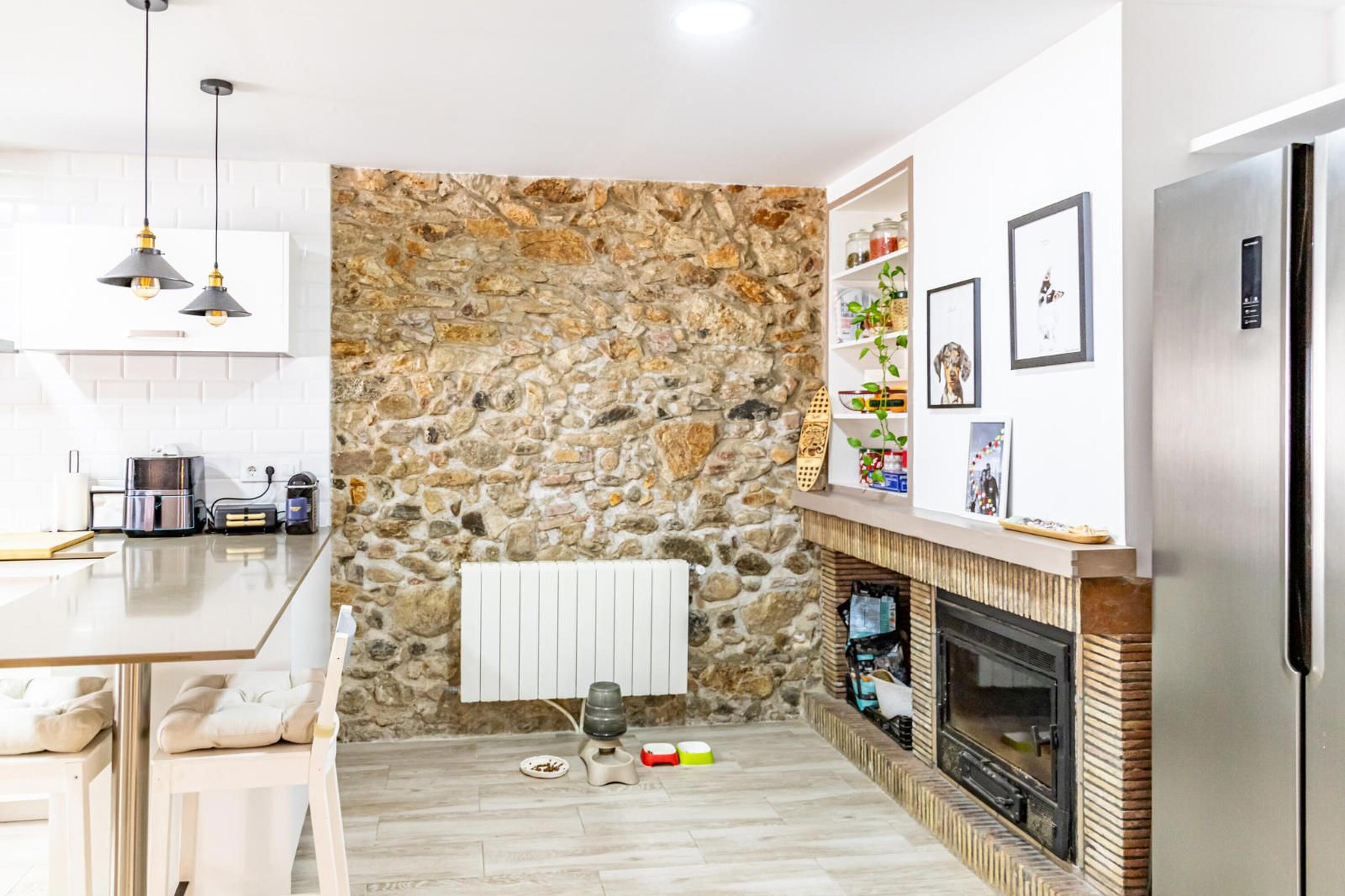 ● Modern 20 m² kitchen with a functional fireplace — perfect for family moments.