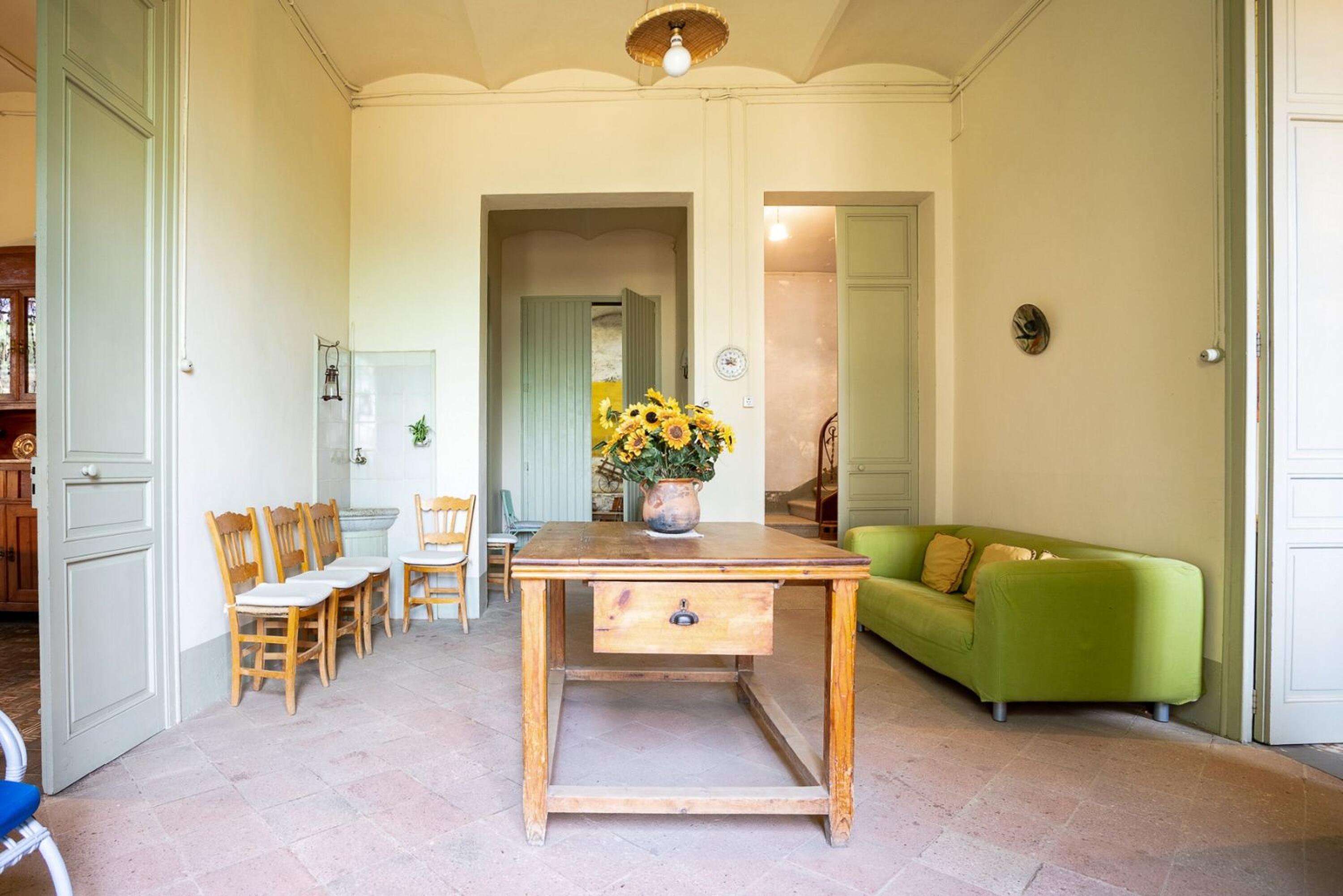 House located between two rials in Arenys de Munt not far from the town center. In agricultural and forestry environment. It consists of 8 hectares mostly of forest (stone pine, holm oak and cork oak) and arable land.