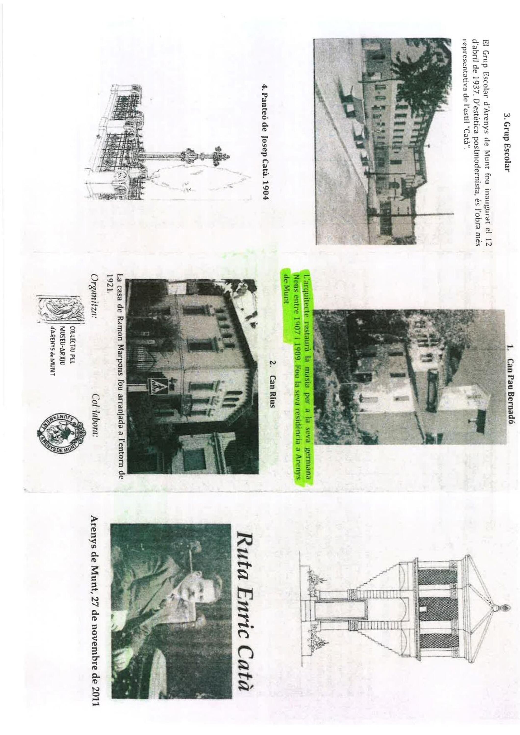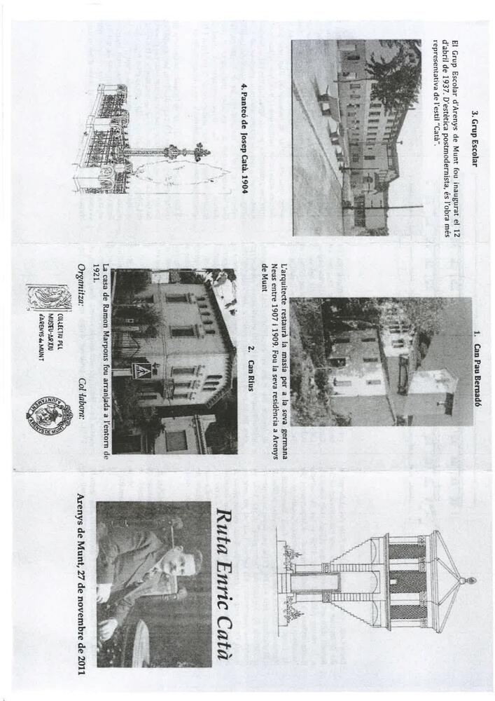 In Arenys de Munt, the work of Enric Catà has shaped the town's urban planning to practically the present day. It has not been alone with the legacy of its buildings, some of them quite important such as Can Pau Bernadó or the School Group, but also with the General Urbanization Plan prepared jointly with the mayor Josep Maria Soler.