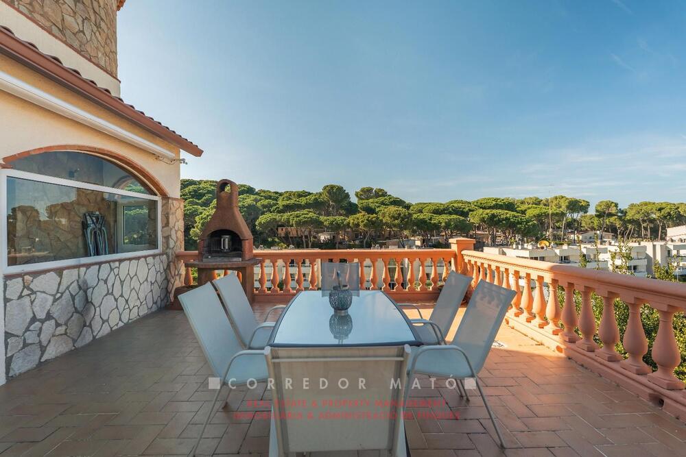 En la planta superior, la zona de descanso incluye el dormitorio principal con gran terraza privada, dos habitaciones adicionales y un baño completo con ducha y bañera.En la planta sótano encontramos un apartamento independiente completo con baño, espacio que antiguamente correspondía al garaje.En el exterior destaca un jardín muy cuidado con piscina de 10 x 5 metros, bodega, casita para herramientas y una casita de madera auxiliar.La finca disfruta de bonitas y amplias vistas abiertas al campo y al bosque, en un entorno tranquilo ideal tanto como primera como segunda residencia.La ubicación permite disfrutar de rutas en bicicleta y paseos por los caminos que bordean el litoral, en plena esencia mediterránea.