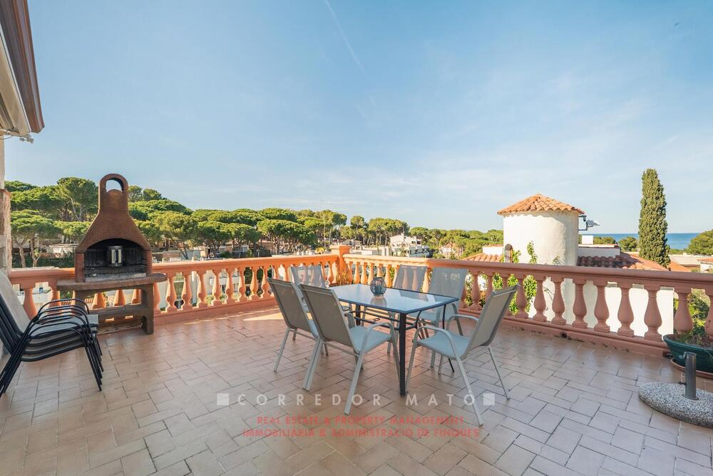 A pocos minutos de la playa de Platja del Racó, esta propiedad ofrece una forma de vivir la Costa Brava con privacidad, amplitud y una gran capacidad de acogida, en un entorno pensado para compartir momentos especiales durante todo el año.La casa principal destaca por su luminosidad, sus espacios abiertos y su conexión natural con el exterior. La terraza, con vistas al mar y al jardín, se convierte en un espacio privilegiado para disfrutar de comidas al aire libre, de los atardeceres de verano y de la calma mediterránea. La piscina privada, el patio y las diferentes zonas exteriores crean una atmósfera relajada y acogedora que invita a desconectar. Además tiene zona de aparcamiento. La vivienda principal dispone de tres habitaciones (una en suite) y dos baños, con una distribución cómoda y funcional para familias numerosas o estancias con invitados. Además, la propiedad incorpora un anexo independiente con dos habitaciones y un baño, ideal para alojar hasta cuatro personas más con total autonomía y privacidad.Como valor añadido excepcional, la finca cuenta también con un apartamento independiente de tres habitaciones y dos baños, un espacio complementario que amplía enormemente las posibilidades de uso de la propiedad: desde acoger a familia extensa hasta generar rentabilidad.La propiedad dispone de licencia turística, un elemento especialmente atractivo para quien busca combinar disfrute personal e inversión en una de las zonas más demandadas del litoral.Una casa pensada para vivirla intensamente, compartirla y aprovechar todo su potencial, en una ubicación donde el mar y la tranquilidad marcan el ritmo de cada día.