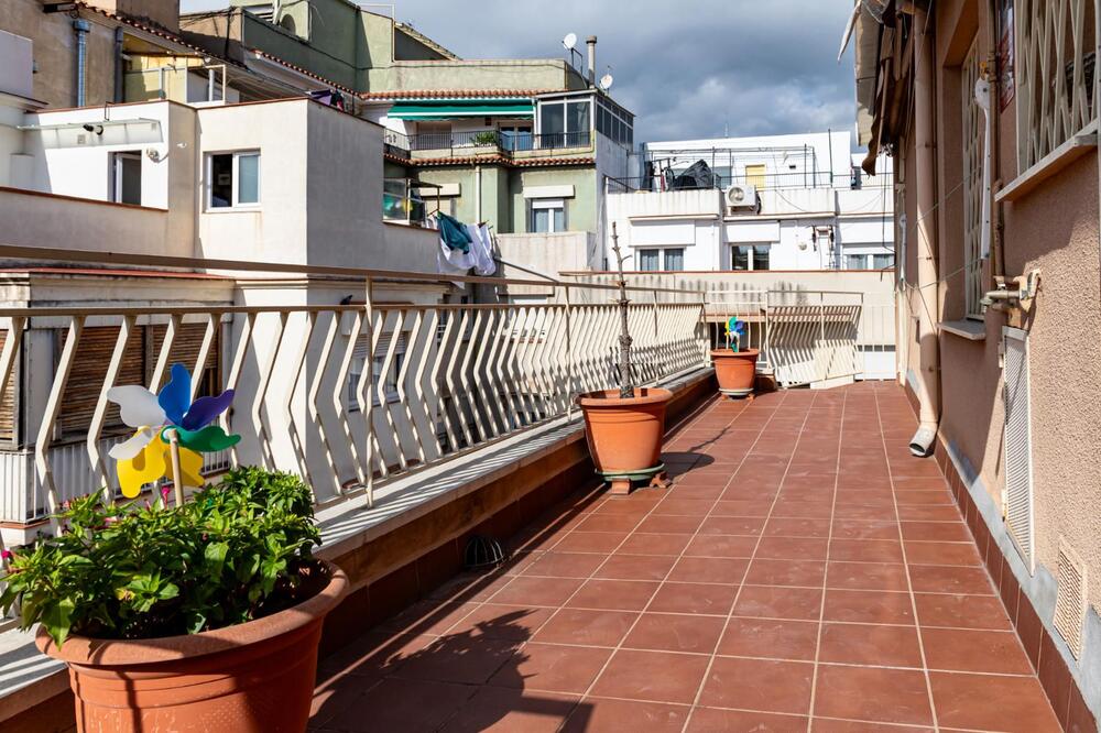 En el prestigioso barrio de Sant Gervasi, entre las calles General Mitre, Mandri y Muntaner, se encuentra este estupendo ático de 100 m² más zonas propias exteriores.