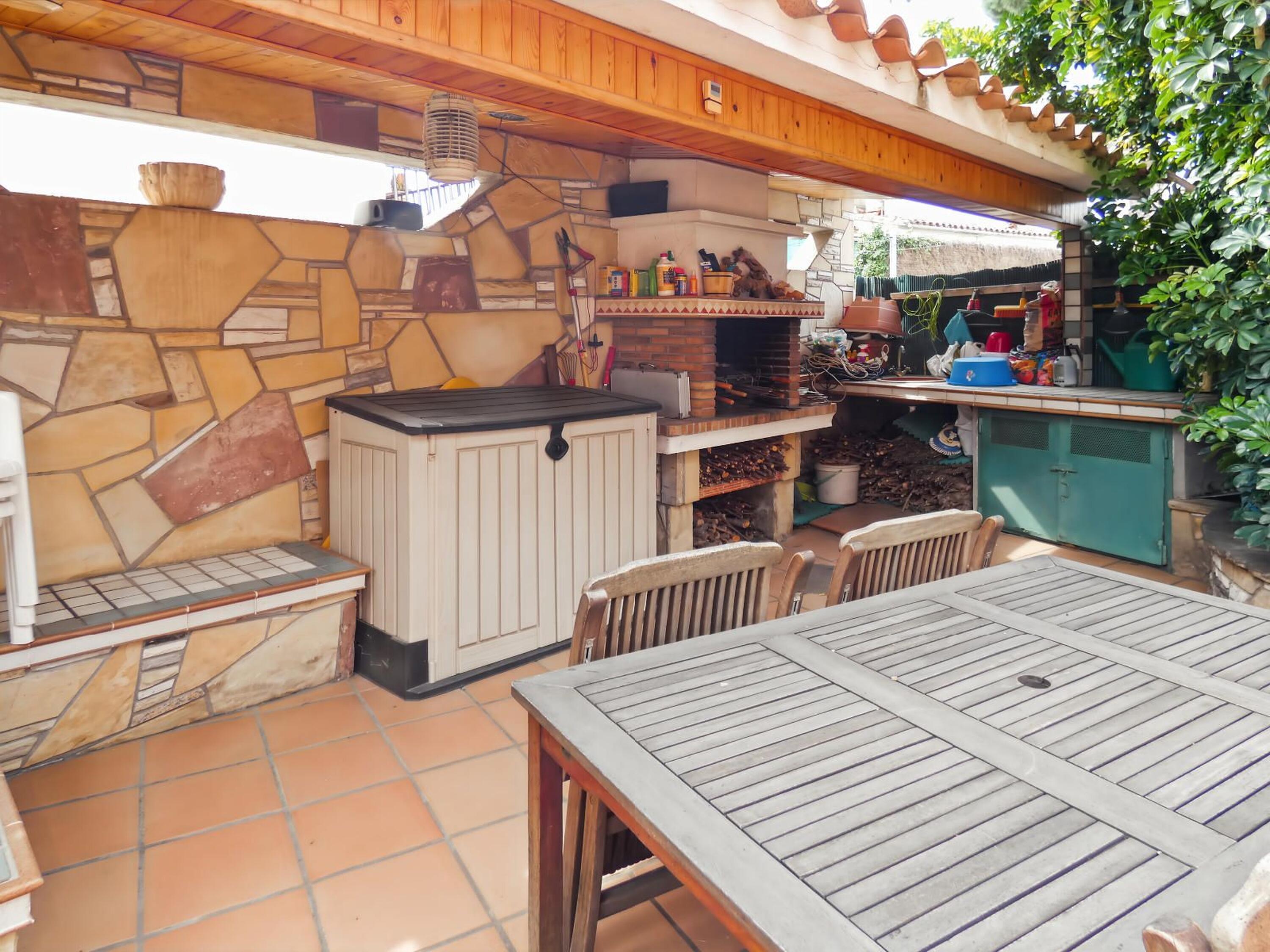 La vivienda destaca por su espectacular zona exterior, que incluye un jardín con piscina privada, porche con barbacoa y una soleada terraza solárium, ideal para disfrutar al aire libre.