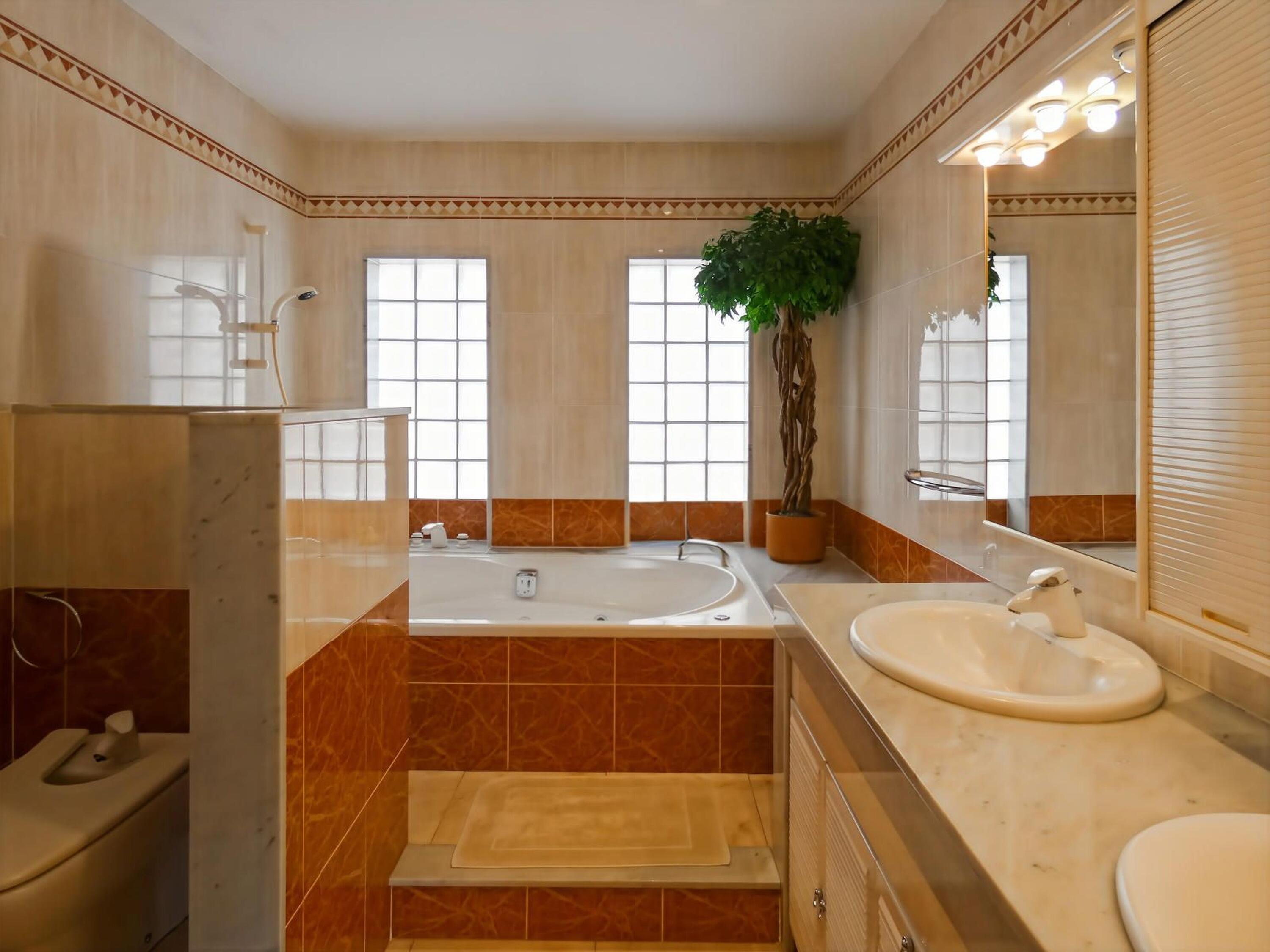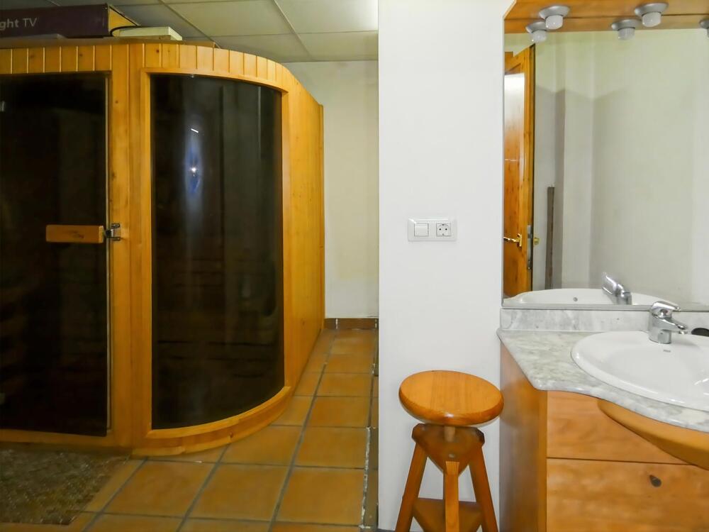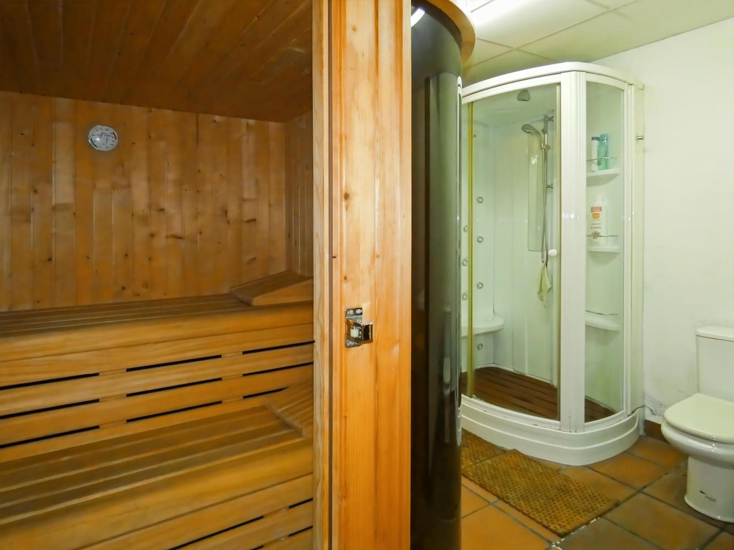 La zona de descanso dispone de 5 habitaciones exteriores, entre ellas una suite con jacuzzi y acceso directo a la piscina. Además, el chalet ofrece sauna y ducha de hidromasaje, aportando un extra de bienestar.