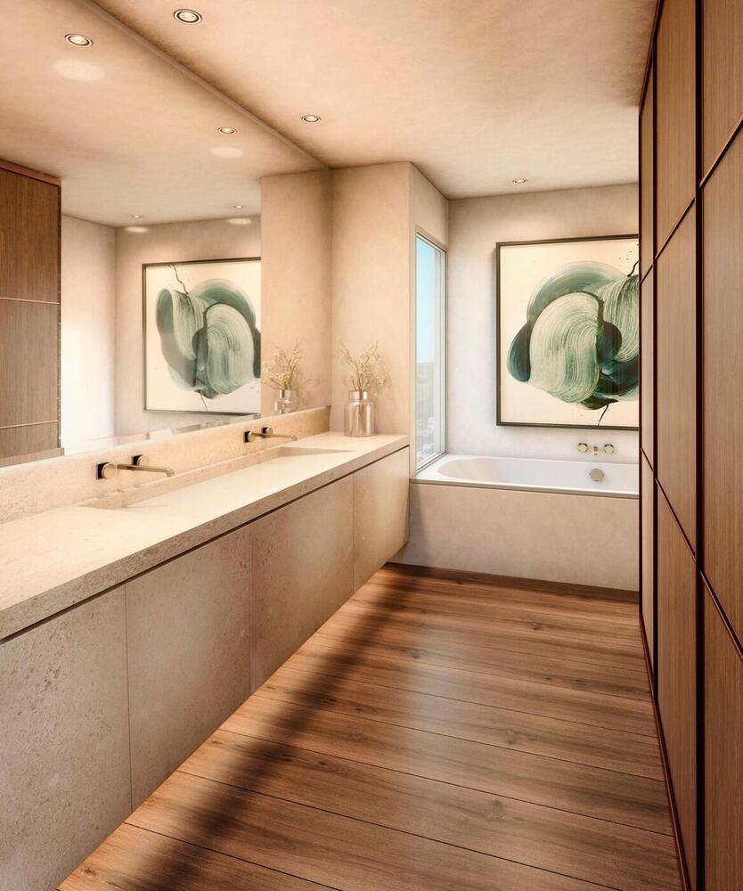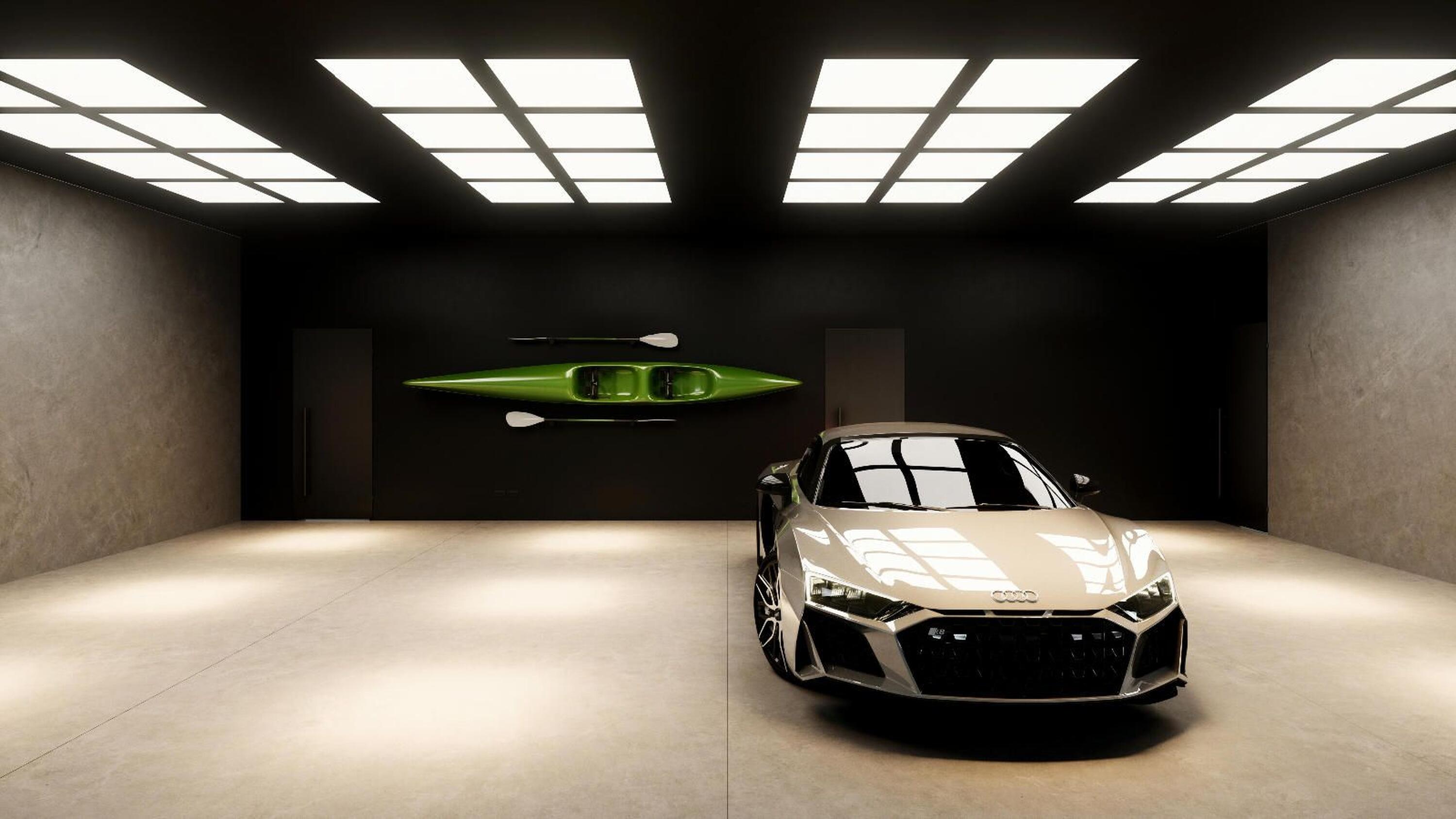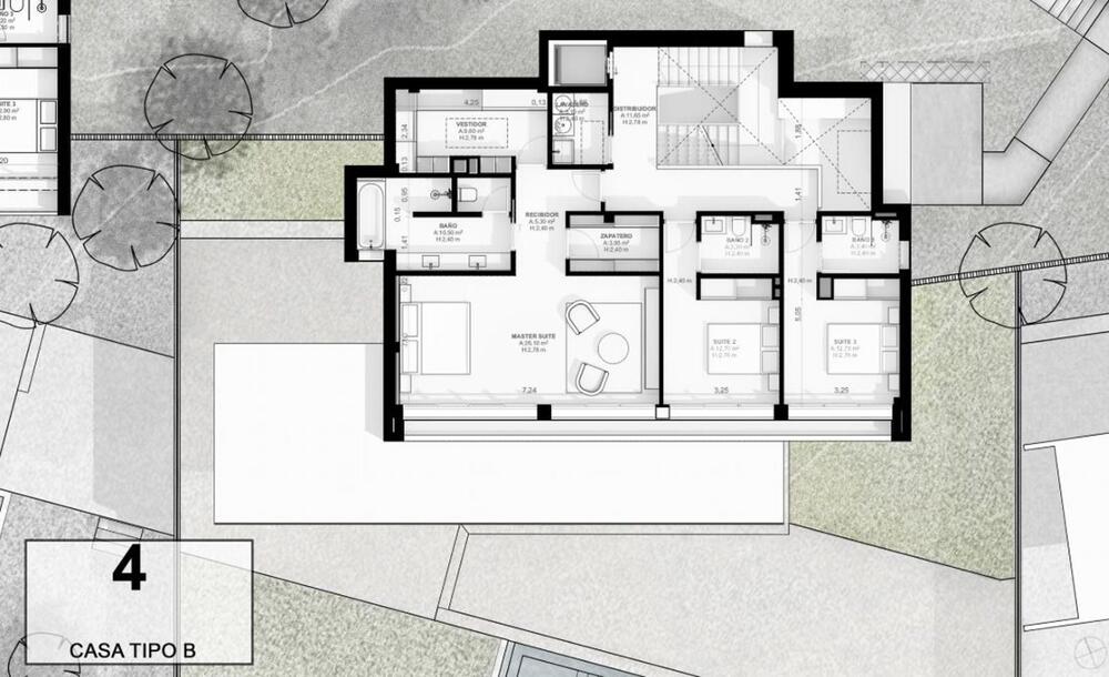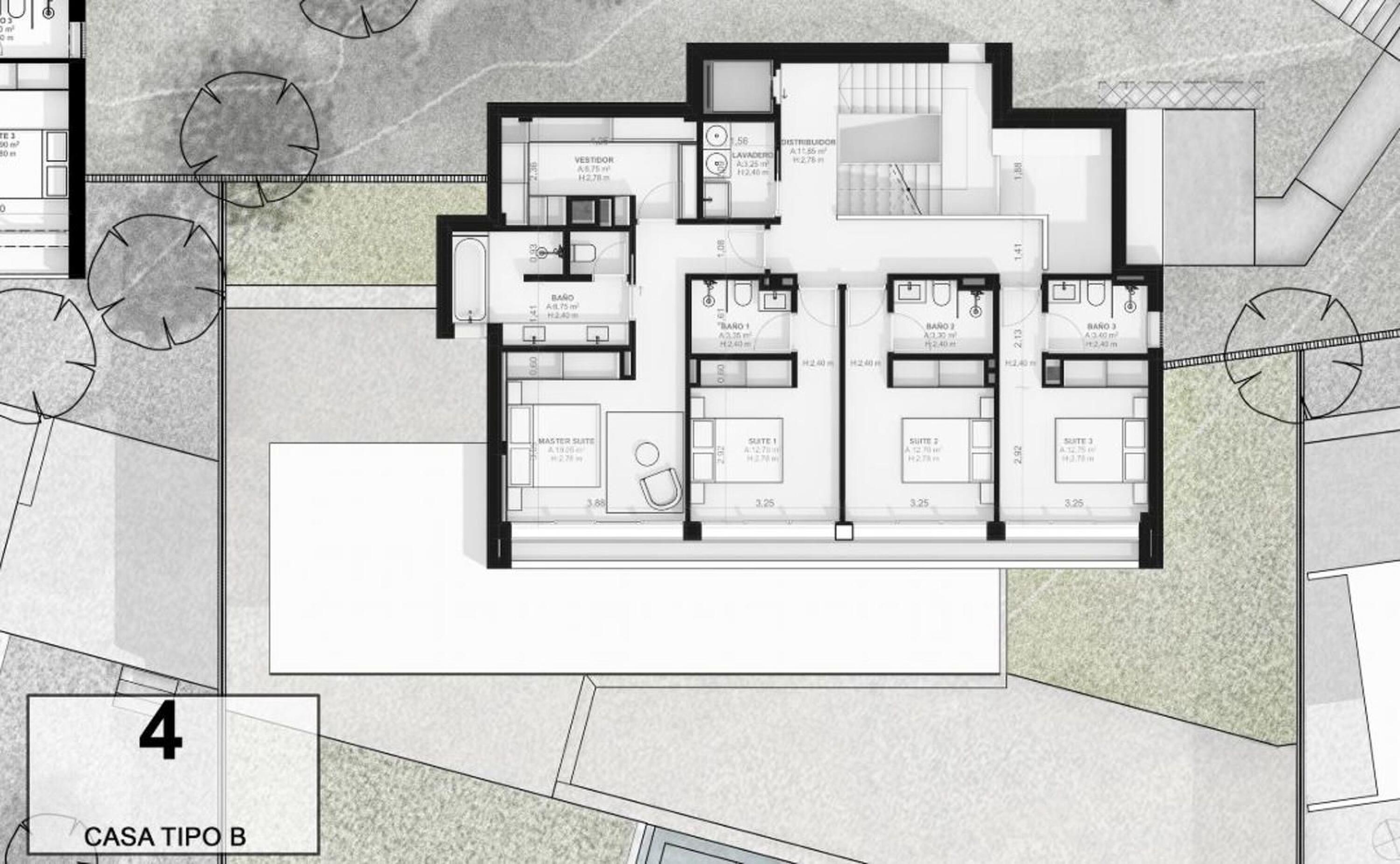 El acceso al recinto es un paseo entre árboles y vegetación mediterránea de bajo mantenimiento, que conduce a una calle subterránea con garajes privados para cuatro vehículos, combinando exclusividad y comodidad sin renunciar a la elegancia. En la planta inferior, los garajes ofrecen la posibilidad de crear un gimnasio privado, sala de ocio o espacio polivalente según tu estilo de vida.