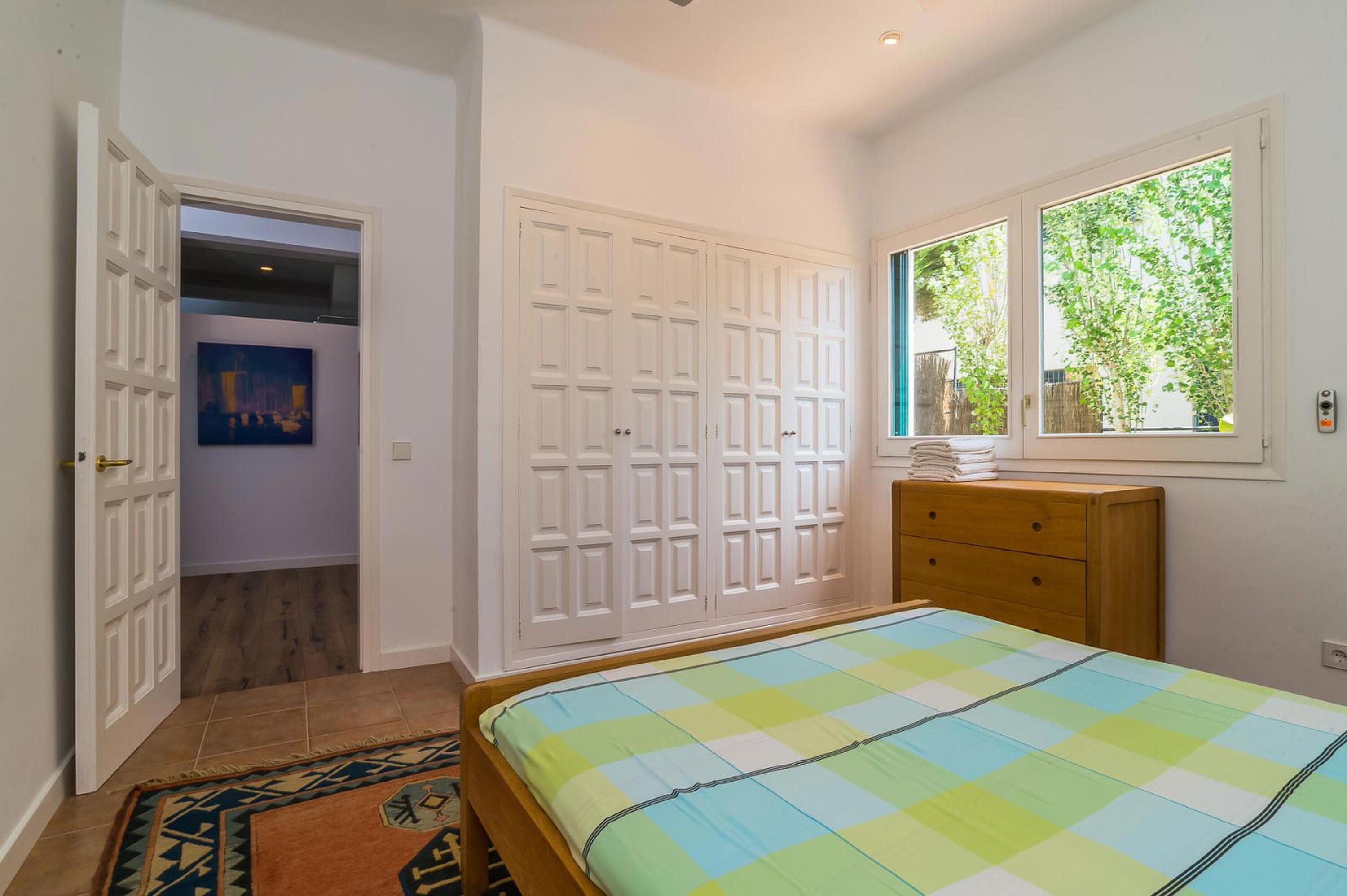 A la planta de abajo se accede por dos escaleras, una de ellas lleva a la zona de las habitaciones y la otra directamente a la cocina. La casa consta de una suite con armarios empotrados y baño moderno con ducha, 2 dormitorios dobles, 1 baño/ducha, 1 dormitorio con literas y baño/ducha, el cual tiene salida directa al jardín.