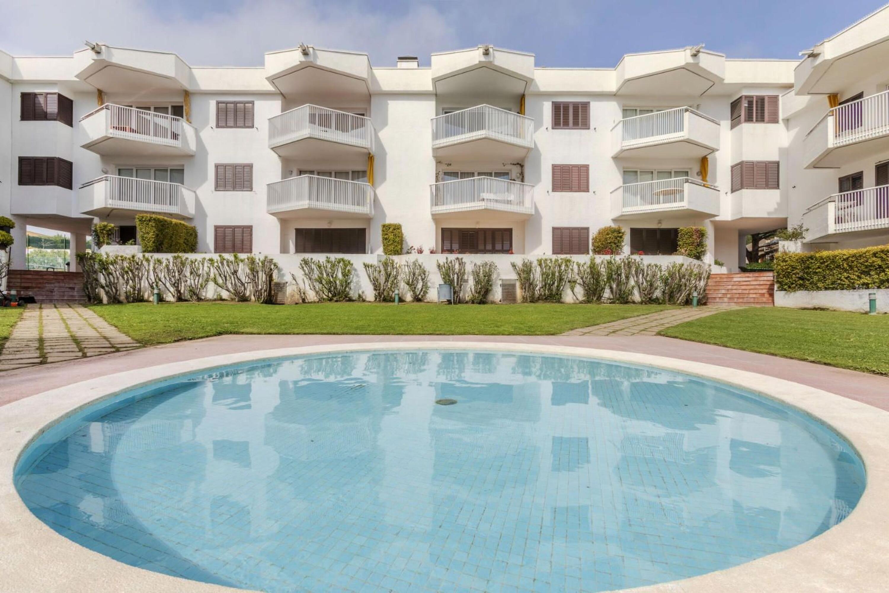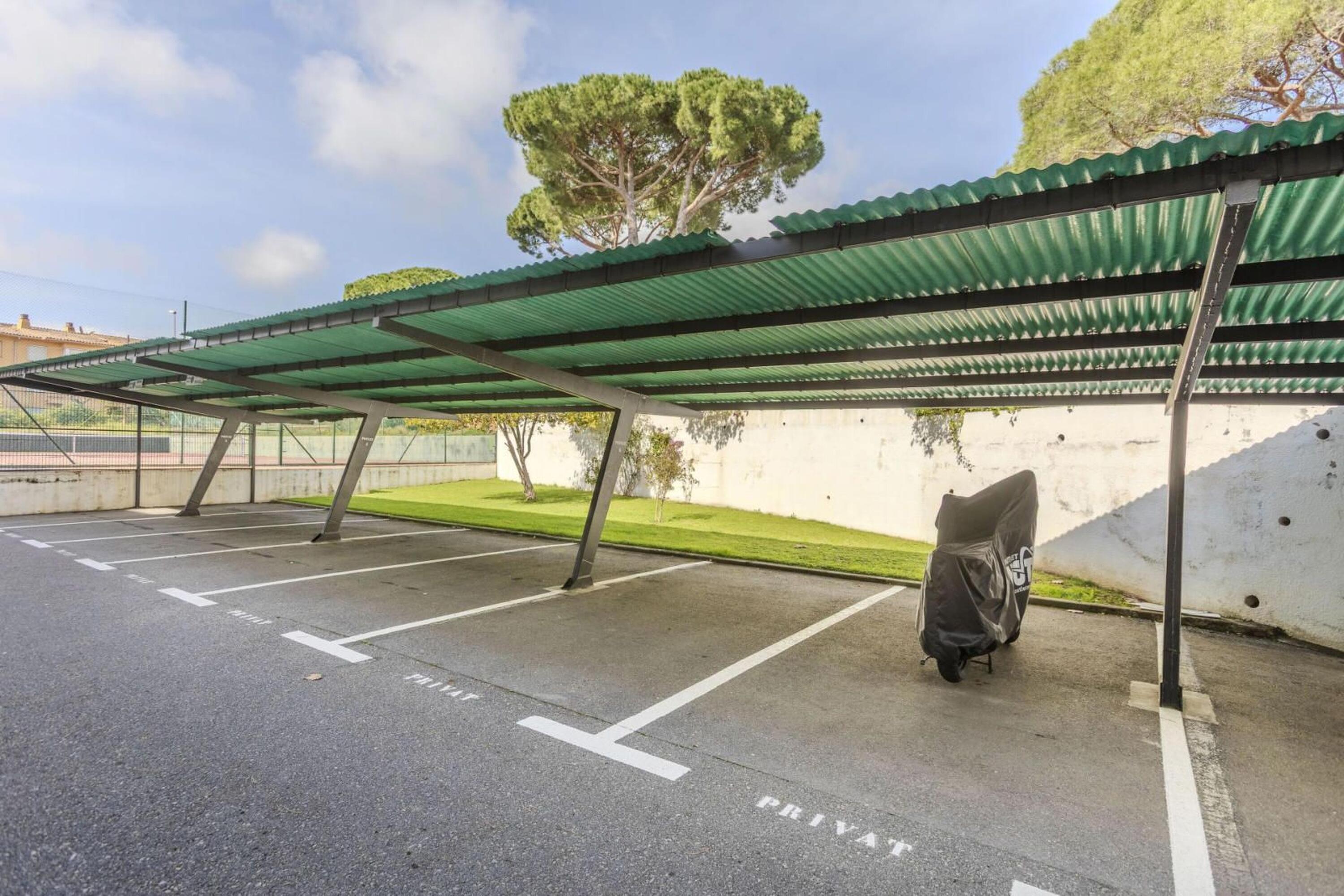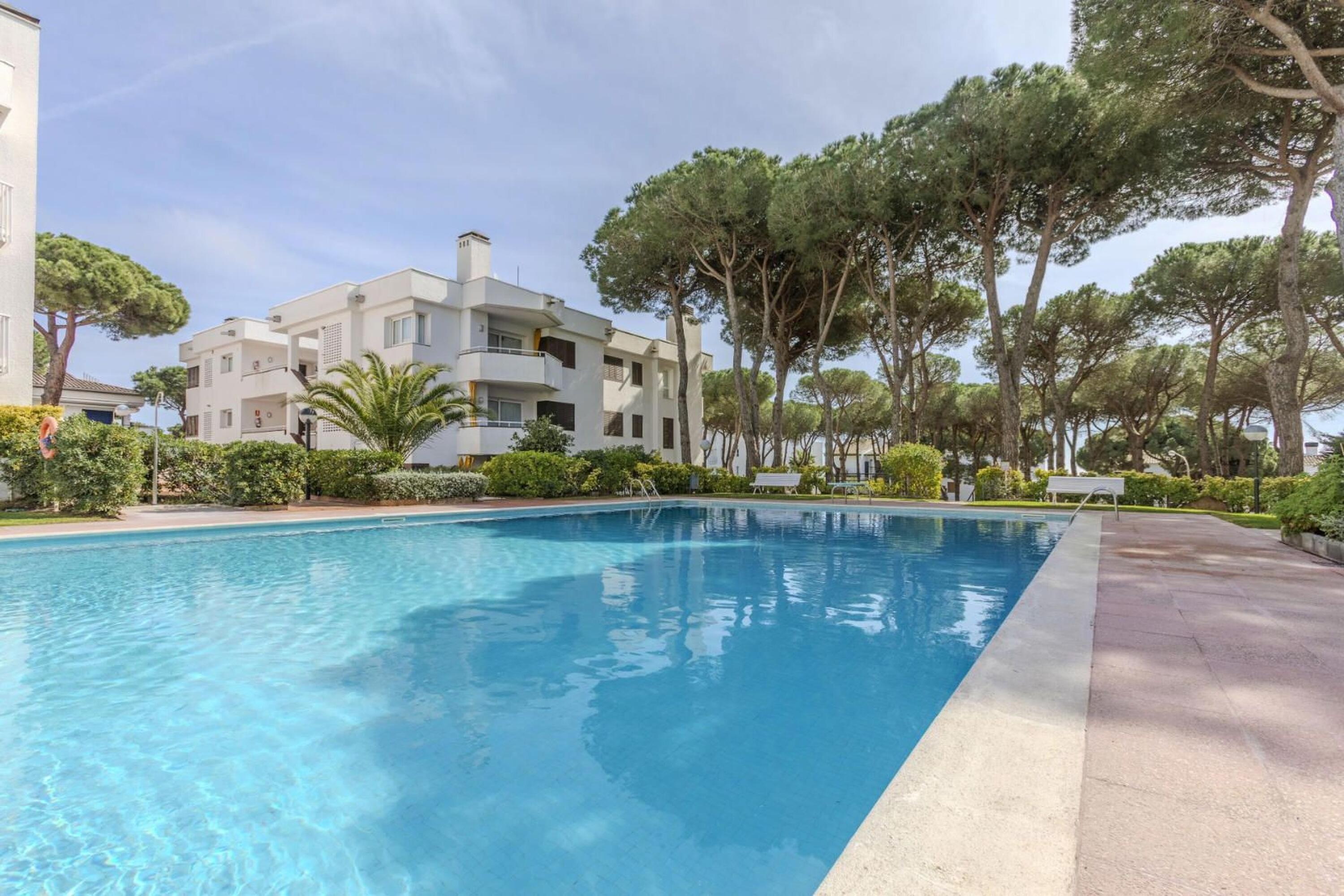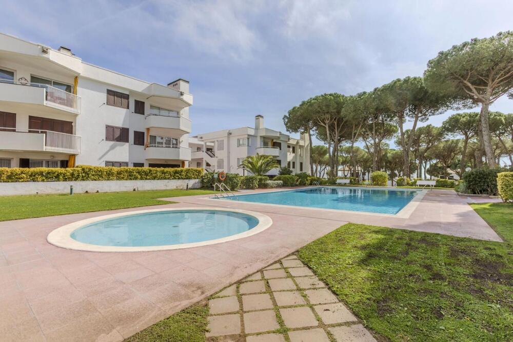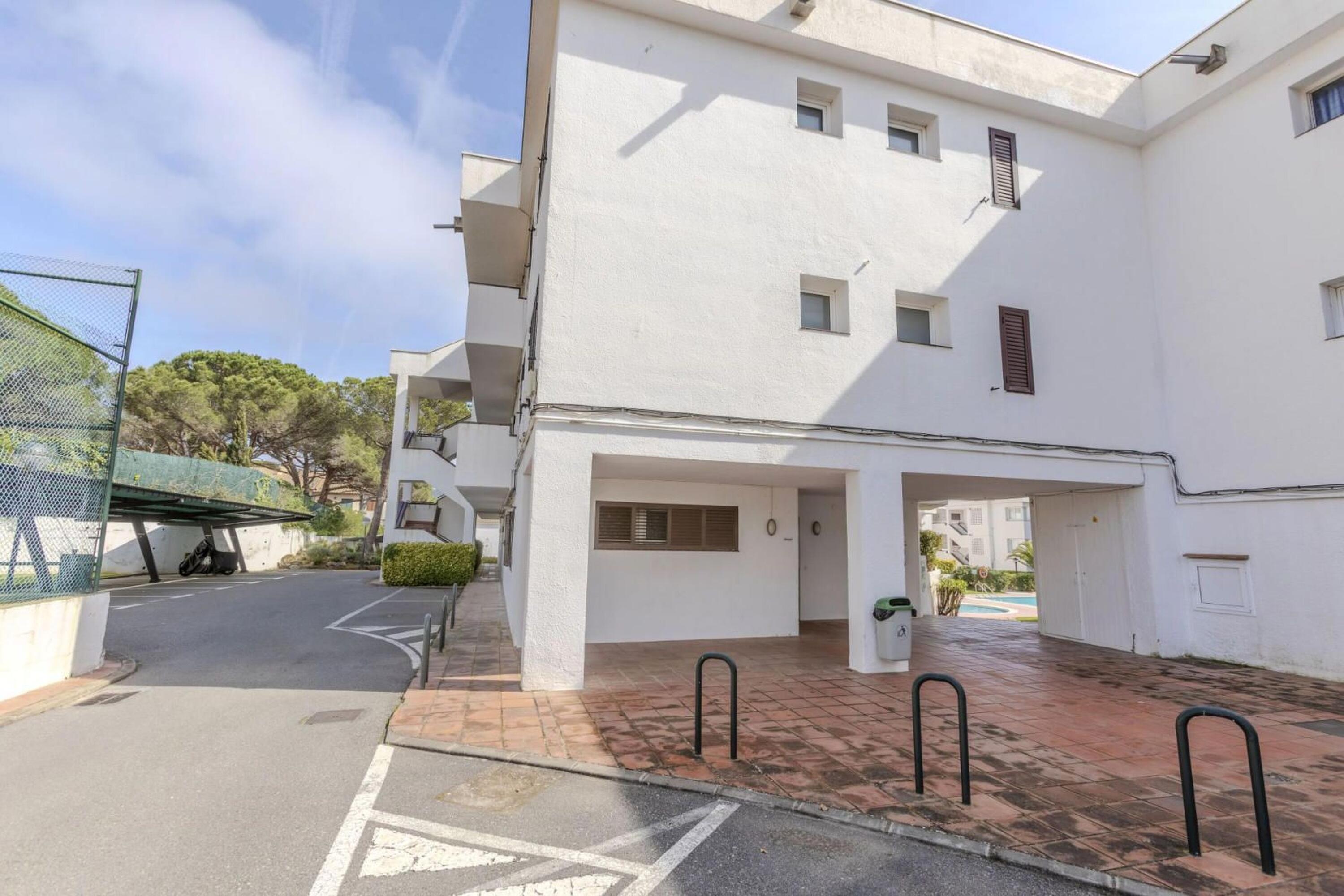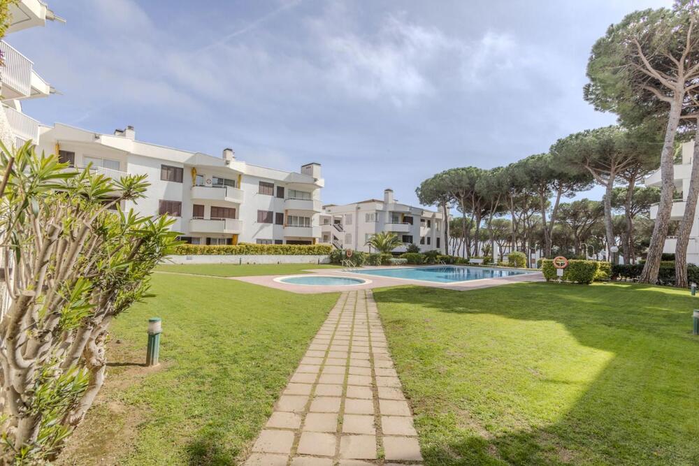 Le logement se situe au premier étage et offre, depuis sa terrasse, une vue sur la vaste zone communautaire avec pins, grande piscine, court de tennis et espaces verts parfaitement entretenus.