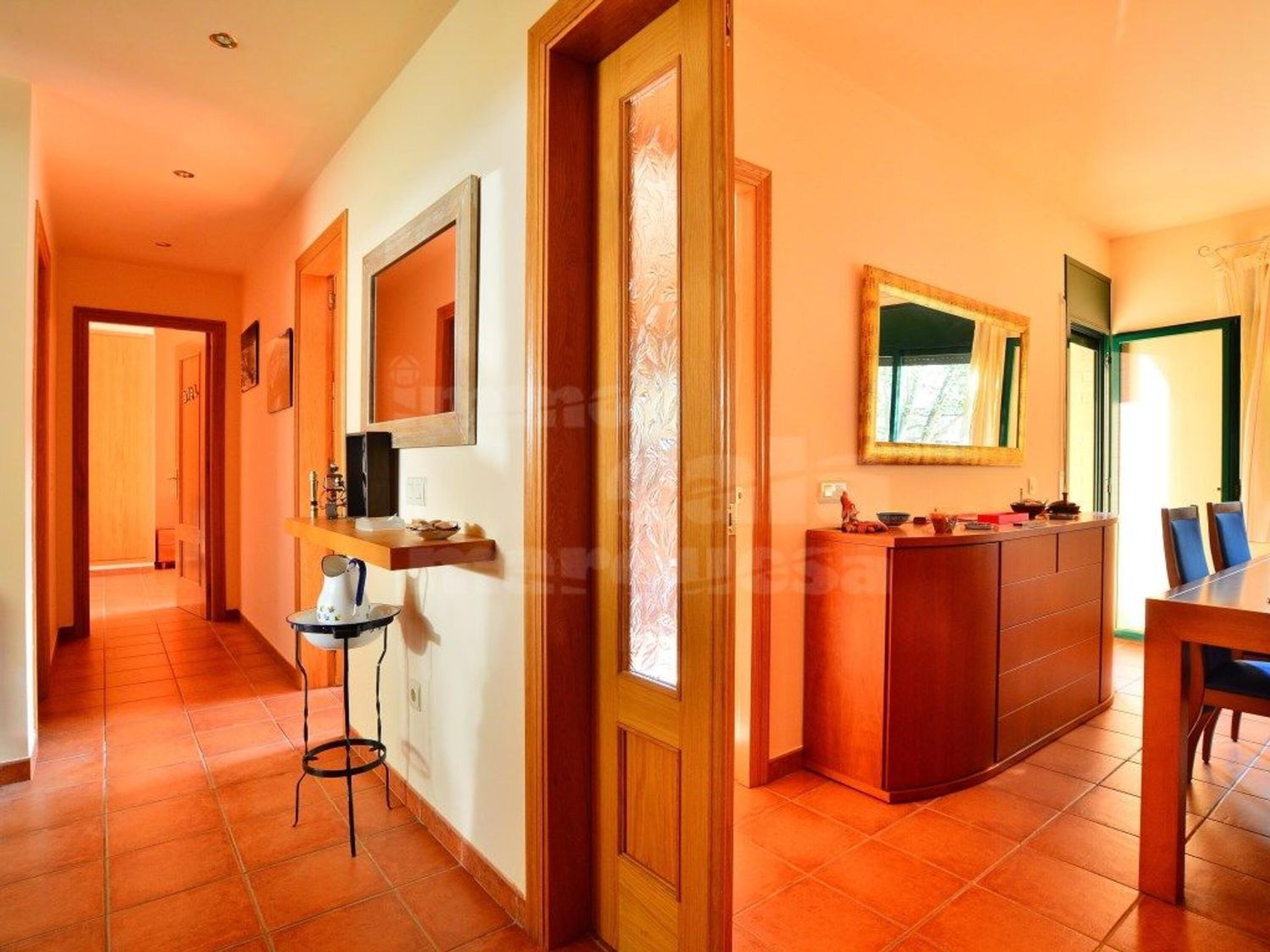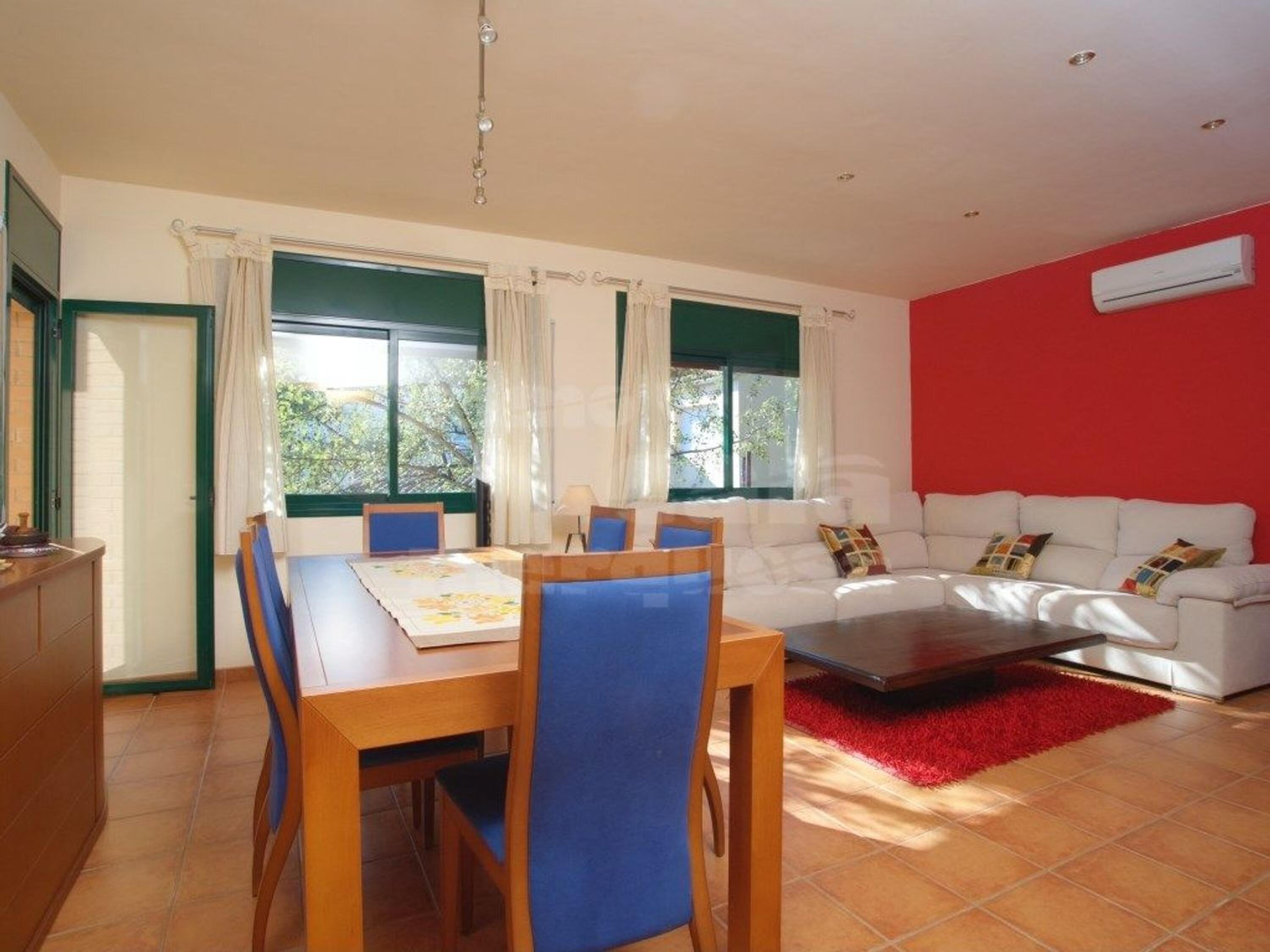 Il s'agit d'une villa en parfait état, prête à emménager, qui se distingue par sa distribution confortable et pratique sur un seul niveau. À l'entrée, un vaste hall mène à un lumineux salon-salle à manger avec accès direct à la terrasse, créant une connexion fluide entre l'intérieur et l'extérieur. La cuisine, entièrement équipée et spacieuse, dispose également d'un accès direct à l'extérieur, idéale pour le quotidien et les repas en plein air. L'espace nuit comprend trois chambres doubles, dont une suite parentale avec salle de bain privative, ainsi qu'une seconde salle de bain complète. La maison est équipée de menuiseries extérieures en aluminium avec double vitrage, climatisation et radiateurs électriques basse consommation, garantissant confort et efficacité énergétique toute l'année.